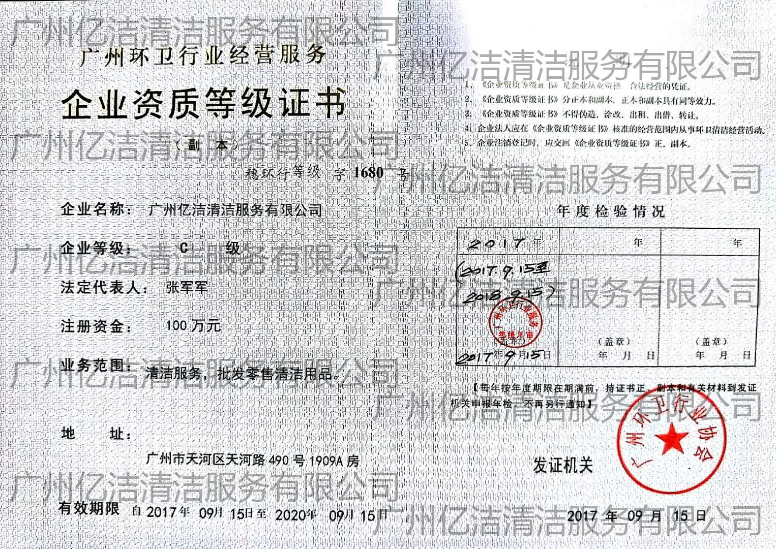 廣州億潔清潔服務(wù)有限公司是經(jīng)廣州市工商行政管理局批準(zhǔn)成立的(注冊資本:100萬元人民幣)。具有獨(dú)立法人資質(zhì)。公司成立2015年,公司具備完善的管理體系和高素質(zhì)管理隊(duì)伍,擁有特種技術(shù)人員33名,保潔服務(wù)人員上萬名,覆蓋廣州市,能及時(shí)調(diào)配并快速投入高效運(yùn)行。我們的每個(gè)員工都經(jīng)過公司的嚴(yán)格篩選,嚴(yán)格培訓(xùn),定期培訓(xùn)后持證上崗以保證服務(wù)品質(zhì),保障客戶的權(quán)利,利益,形象等不受損失。 廣州億潔清潔公司是一家設(shè)備齊全,技術(shù)強(qiáng)大的綜合型清潔服務(wù)公司,為客戶提供完善服務(wù)尊定了堅(jiān)定的基礎(chǔ)。 司于2010年全面推行了ISO9001質(zhì)量管理體系認(rèn)證和ISO14001國際環(huán)保體系認(rèn)證。先后獲得廣州高層建筑外墻清洗維修作業(yè)【安全資質(zhì)證書】、【廣州環(huán)衛(wèi)企業(yè)等級(jí)證書C級(jí)資質(zhì)】、廣州疾控中心頒發(fā)的【四害消殺服務(wù)資質(zhì)證】、【空氣治理A級(jí)資質(zhì)】、中國石材協(xié)會(huì)頒發(fā)的【石材資質(zhì)B級(jí)資質(zhì)】等。 廣州億潔清潔服務(wù)有限公司致力于打造專業(yè)、實(shí)惠、靠譜的保潔服務(wù)公司,把專業(yè)的事情交給專業(yè)的我們,您放心! 億潔清潔服務(wù)項(xiàng)目: 廣州保潔服務(wù):新建樓宇、別墅、酒店、醫(yī)院、辦公樓、賓館、企事業(yè)單位廠房竣工后開荒及裝修后精細(xì)保潔.工程保潔服務(wù)。 廣州物業(yè)托管:為廣州市各大企事業(yè)單位、賓館、政府機(jī)關(guān)、小區(qū)物業(yè)、酒店及廠房提供專業(yè)化保潔、園林、設(shè)施維護(hù)等管理服務(wù)。 廣州高空作業(yè):高空玻璃幕...[詳情]